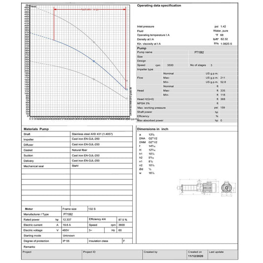 2.5" Port WATER PUMP - 12720 GPH - 12.5 HP - 460V - 3 Ph - 2 Stage - Horizontal