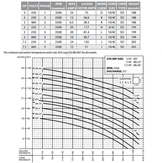 Submersible Effluent Pump - 1/2 HP - 230V - 1 Ph - 3,500 RPM - 140 GPM - 2" Port