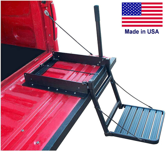 Tailgate Step Ladder - For Trucks w/ Bedcovers - 300 lbs Cap - Hand Rail - Folds
