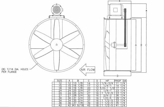 34" TUBE AXIAL DUCT FAN - 13,695 CFM - 230/460 V - 3 Ph - Belt Driven - 1.5 Hp