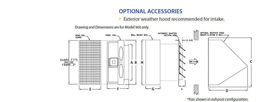 12" Exhaust Fan - Butterfly Damper - 930 CFM - 115/230 Volts - 1 Ph - Variable