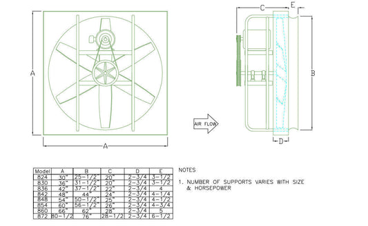 EXHAUST FAN Commercial - Belt Drive - 48" - 115/230V - 1 Ph - 1/2 Hp 17,100 CFM