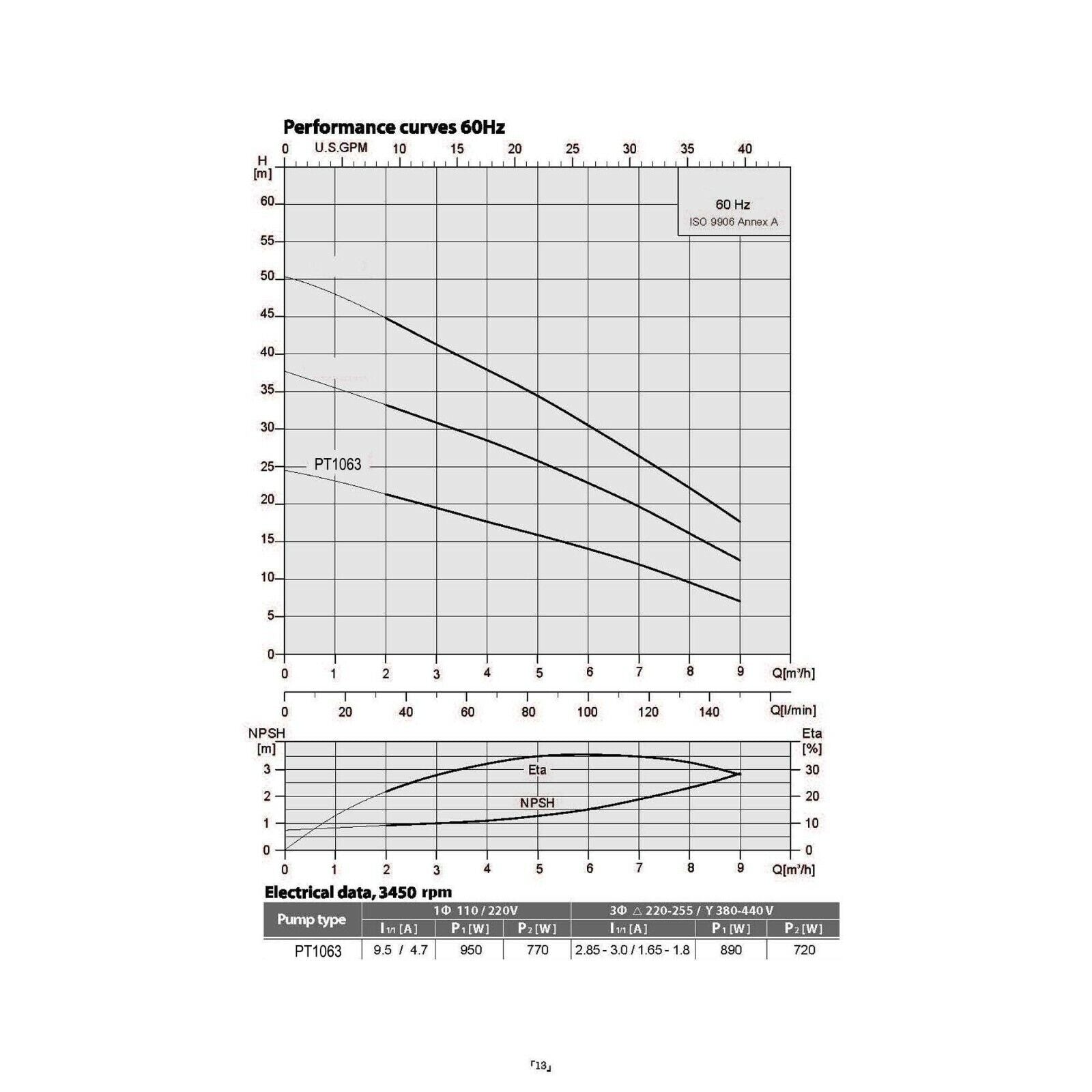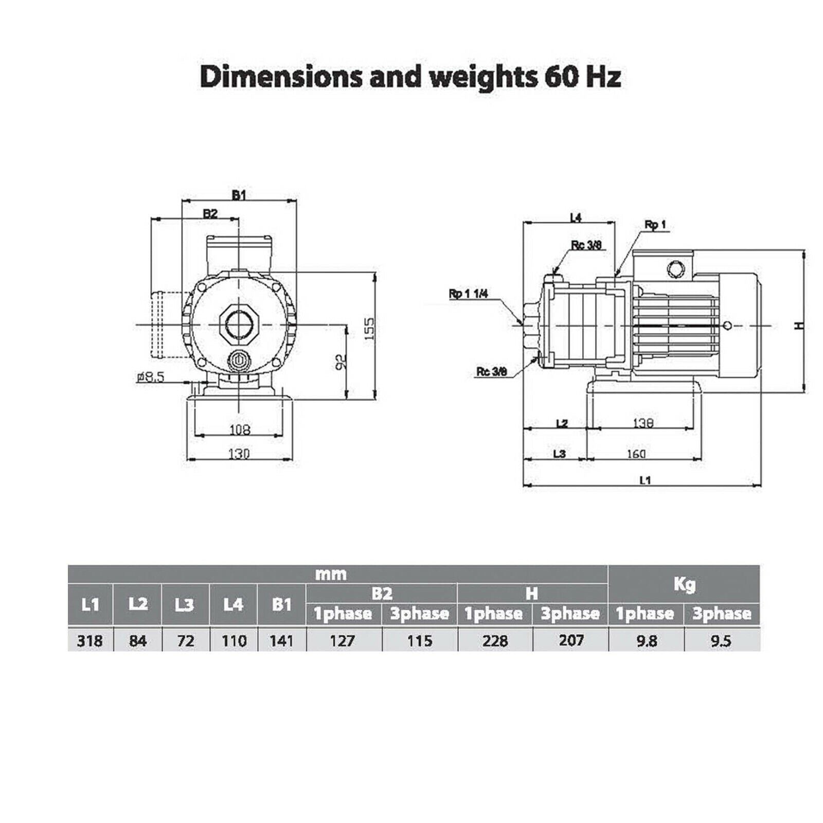 Description: 1-1/4" Port Centrifugal WATER PUMP - 2400 GPH - 110/220V - Multistage Horizontal
