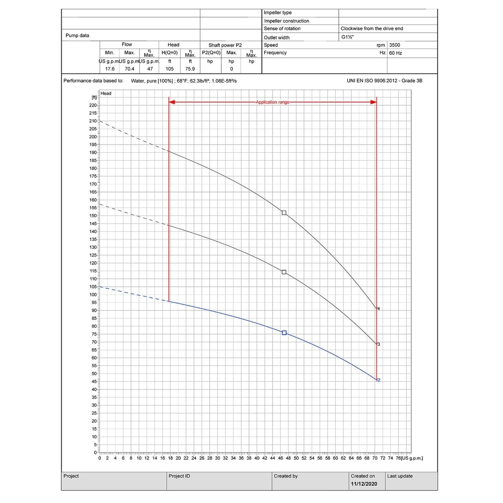 Description: 1.5" Port WATER PUMP - 4230 GPH - 230/380 Volts - 3 Phase - 2 Stage - 1.5 HP - Horizontal