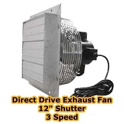 Description: 12" Exhaust Fan - Shutter - 3 Speed - Direct Drive - 1115 CFM - 115 Volts - 1 Ph