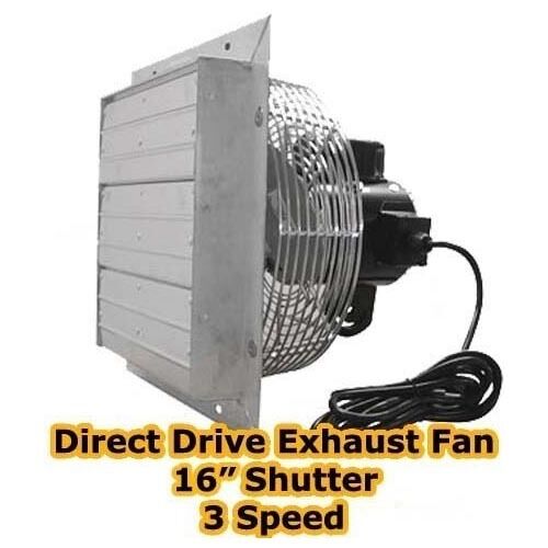 Description: 16" Exhaust Fan - Shutter - 3 Speed - Direct Drive - 3,000 CFM - 1570 RPM - 115V