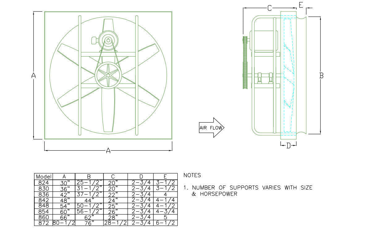 · This series of exhaust/panel fans is available in 24", 30", 36", 42", 48", 54", 60" and 72" configurations