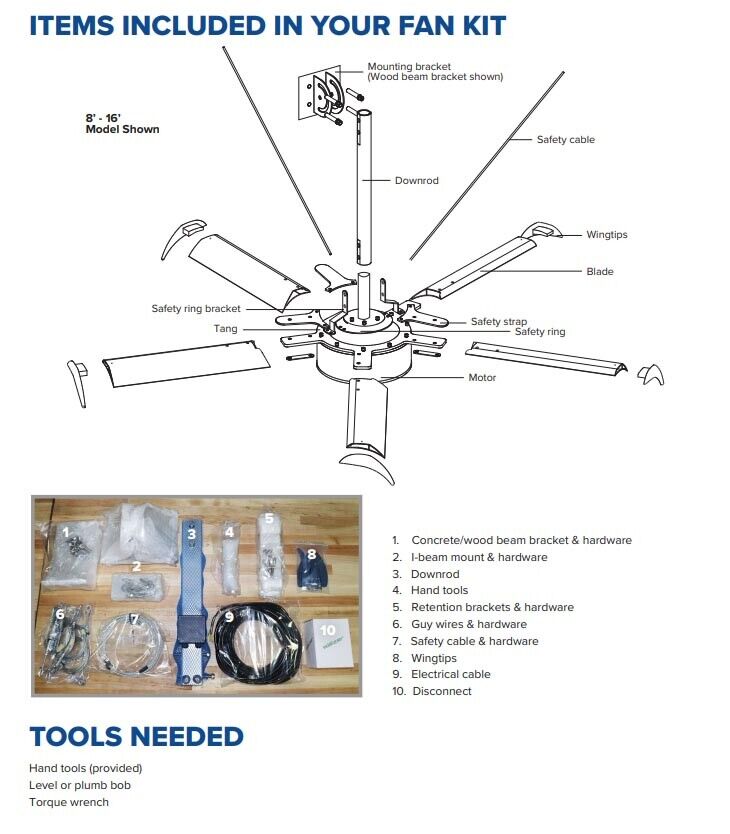 Description: 24 ft Ceiling Fan - 23,732 Sqft Coverage - 230 Volts - 3 Phase - Commercial