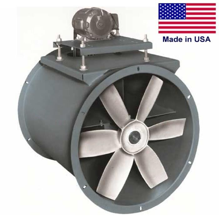 Features: 30" Blade diameter - Tube Axial - Covers a wide variety of indoor and outdoor applications - TEFC (Totally Enclosed Motor) - Shaft seal and slinger are included - AMCA Air certified performance - Cast aluminum propeller - 14,025 CFM - Belt Driven - 3 Hp - 6 Blades - 3 Phase - Proudly Made in the USA with only commercial grade material.