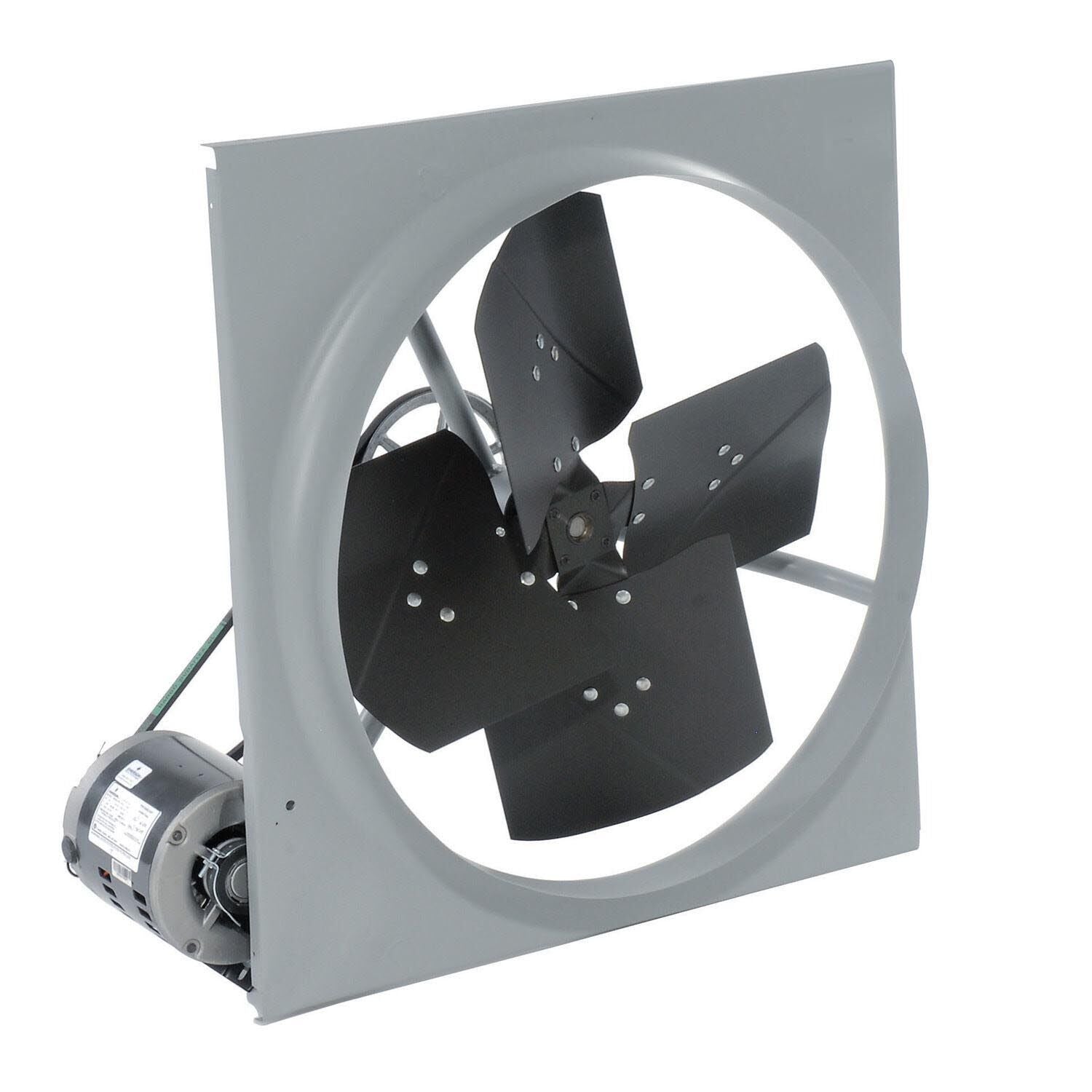 Features: 30" Exhaust Fan - 4 Steel Blades - 120 Volts - Belt Driven - Powder coat finish - 7,730 CFM - 1/3 HP - Single Phase - Commercial duty.