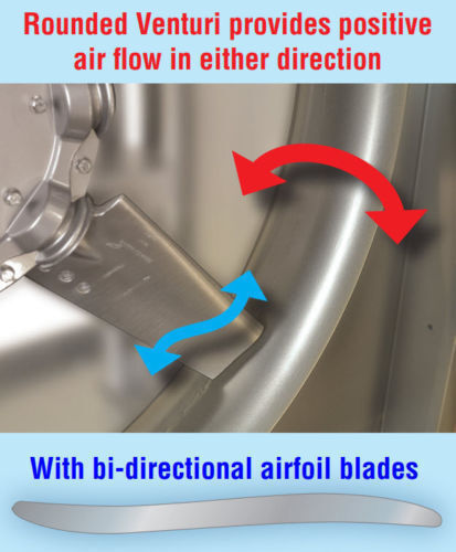 - Features: Bi-directional airfoil fan blades, reversing switch, heavy duty welded fan housing, polyester powder-coat finish