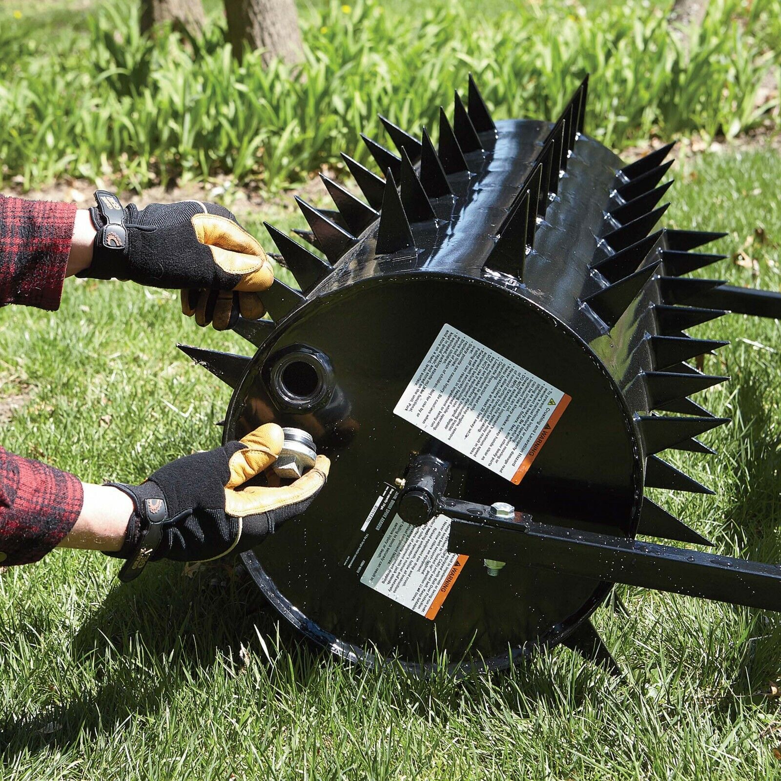 Description: 36" Spike Aerator - Drum - 300 lbs Capacity - 78 Spikes - 2.5" Penetration
