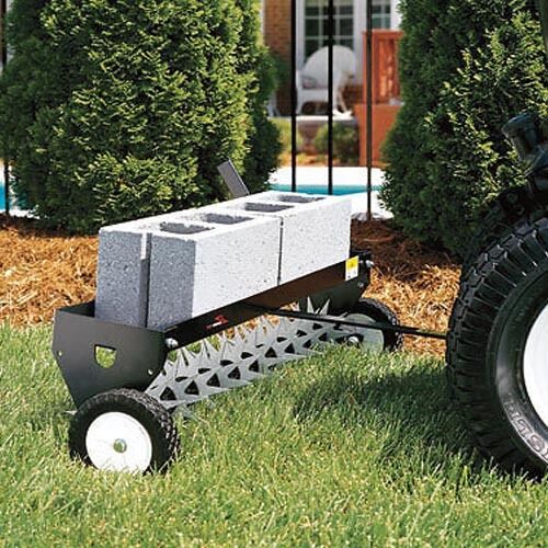 Features: Plug type aerator - 2 piece drawbar - Universal hitch - Semi pneumatic - 48" working width.